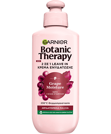 Πλούσια σε νερό και ενισχυμένα με ισχυρά αντιοξειδωτικά, τα σταφύλια αντέχουν στις πιο απαιτητικές εξωτερικές επιθέσεις και διατηρούν τη φυσική τους λάμψη για μεγάλο χρονικό διάστημα. Εμπνευσμένη από τη δύναμη των αμπελώνων, το Botanic Therapy δημιουργεί τη νέα σειρά περιποίησης Grape Moisture για τα αφυδατωμένα μαλλιά που εκτίθονται στις καθημερινές επιθέσεις, όπως το βούρτσισμα, το styling με θερμότητα , την έκθεση στην UV ακτινοβολία αλλά και τη χημική επεξεργασία όπως η βαφή, οι ανταύγειες και το ντεκαπάζ. Ολοκλήρωσε την καθημερινή σου ρουτίνα ομορφιάς με το Botanic Therapy Grape Moisture Conditioner, εμπλουτισμένο με νερό σταφυλιού και αντιοξειδωτικό έλαιο σταφυλιού που ενυδατώνει εντατικά τα μαλλιά και αναζωογονει τη λάμψη τους.