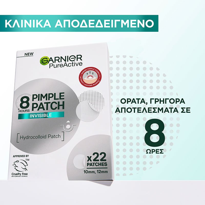 Αόρατα Υδροκολλοειδές επιθέματα κατά των ορατών ατελειών. Μειώνουν την εμφάνιση ορατών ατελειών χωρίς να αφήνουν ορατά σημάδια. Ορατά και γρήγορα αποτελέσματα σε 8 ώρες. Εξαιρετικά λεπτά και αόρατα σε κάθε τόνο επιδερμίδας. Διαθέσιμο σε δύο μεγέθη για κάθε ατέλεια.